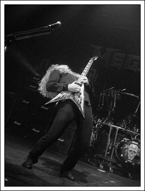 Having a unique vantage point from the photo pit for the first 3 songs, the thing that struck me was that there didn’t seem to be any bonding between band members – something that is decidedly different when you see a new, young band play a small club where they are forced to interact to avoid bumping into each other. And Dave Mustaine seemed very focused on playing with technical proficiency which came across as a bit stiff. Nevertheless, the opening 3 songs sounded amazing and I was particularly happy to hear “Wake Up Dead” so early in the set.